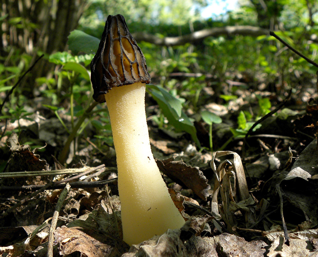 Passend zur Jahreszeit: die Käppchen-Morchel / Morchella gigas (Batsch: Fr.) Pers., auch Halbfreie Morchel genannt, weil ihre Hutkante nicht mit dem Stiel verwachsen, sondern bis zu einem Drittel frei ist.