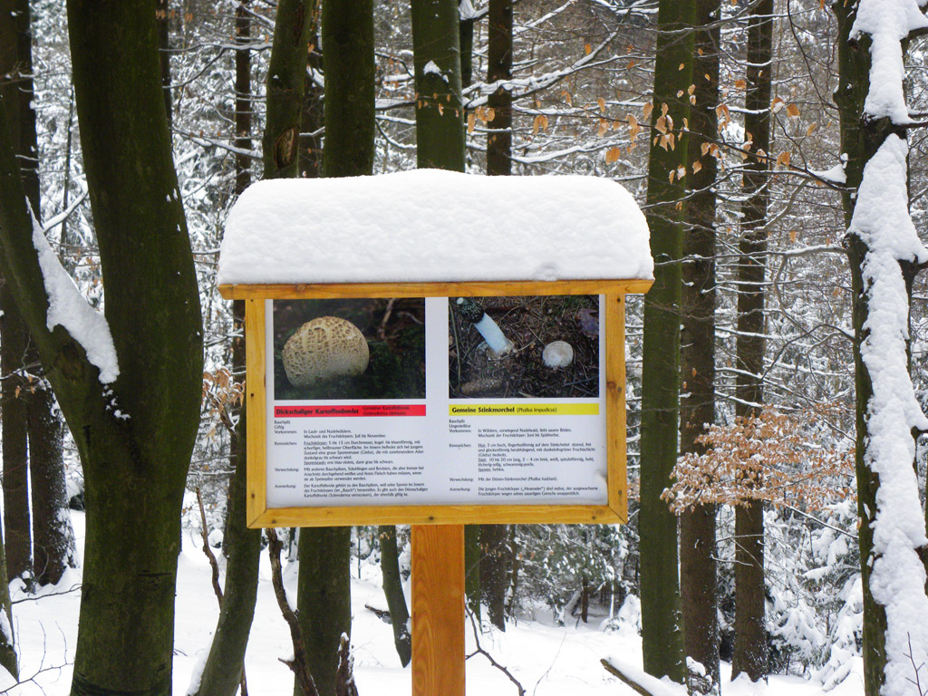 Nur Pilze waren keine zu finden. Da musste man sich mit den Abbildungen auf den Tafeln des Pilzlehrpfades begnügen.